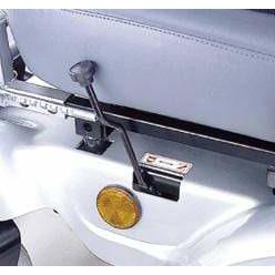 The C.T.M. HS-5600 Power Wheelchair has a dedicated free-wheel lever that has to be unlocked before the unit can free-wheel like an ordinary wheelchair. There are also anti-tip wheels on the rear. The base has a circuit breaker to protect the power wheelchair from an overloaded electric current. The seat features a seatbelt.