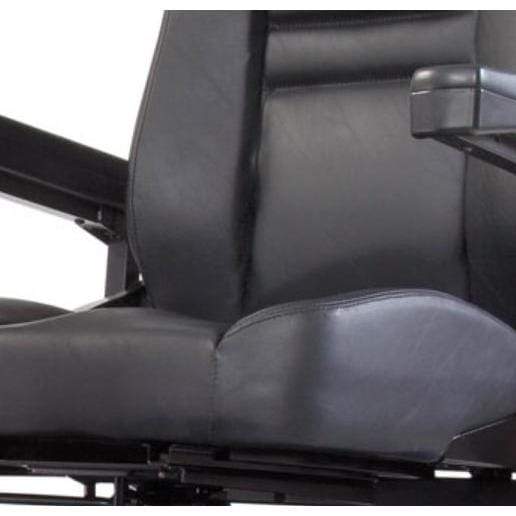 - Seat comfortably in the full-sized, upholstered orthopedic seat, complete with a headrest and swing-up armrests. The chair is fully upholstered, and swivels for easy access and getting off the scooter.